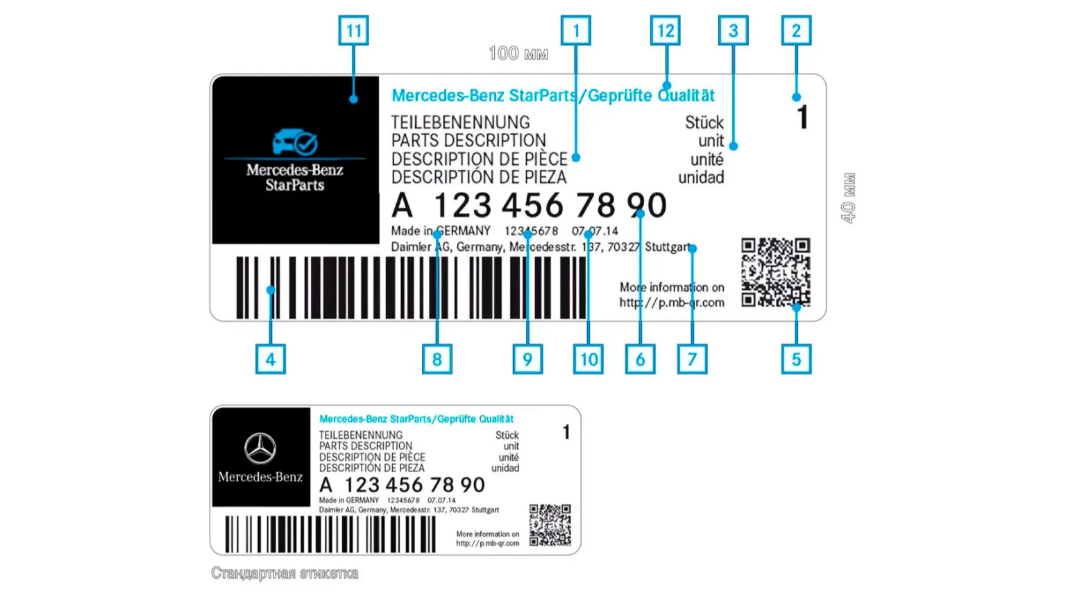 - стандартные размеры наклеек на упаковках оригинальных запасных частей;